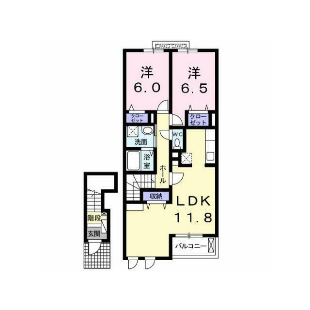 | 間取り | 2LDK(洋6.5、洋6、LDK11.8) | 主要採光面 | 南東 |