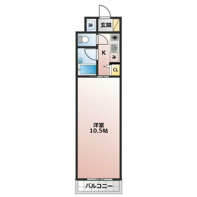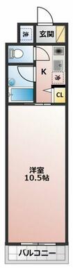 | 間取り | 1K(洋10.5、K2.5) | 主要採光面 | 南 |