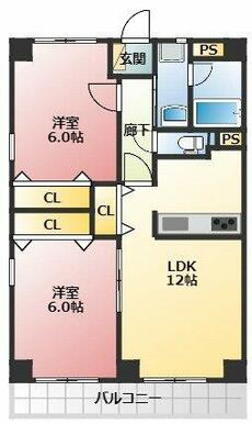 2LDK(LDK12、洋6×2) |