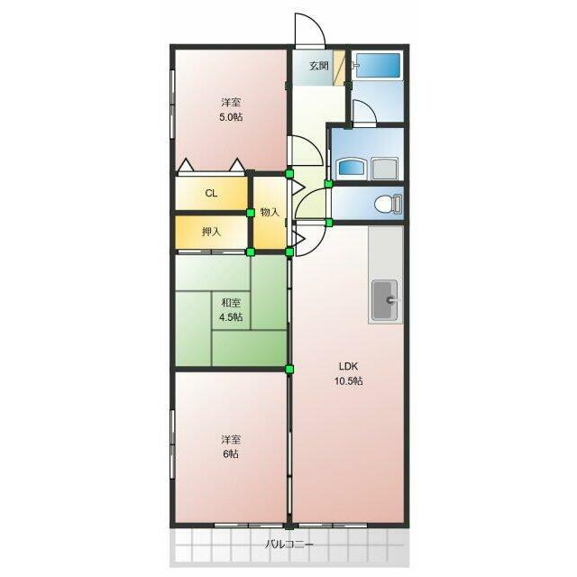 | 間取り | 3LDK(和5、和4.5、洋6、LDK10.5) | 主要採光面 | 南 |